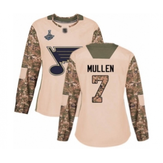 Women's St. Louis Blues #7 Joe Mullen Authentic Camo Veterans Day Practice 2019 Stanley Cup Champions Hockey Jersey
