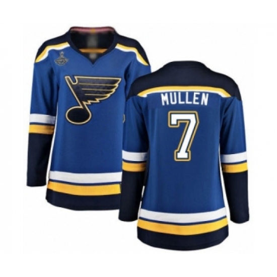 >Women's St. Louis Blues #7 Joe Mullen Fanatics Branded Royal Blue Home Breakaway 2019 Stanley Cup Champions Hockey Jersey