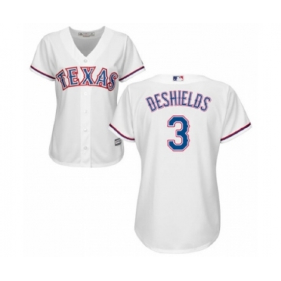 Women's Texas Rangers #3 Delino DeShields Jr. Authentic White Home Cool Base Baseball Player Jersey