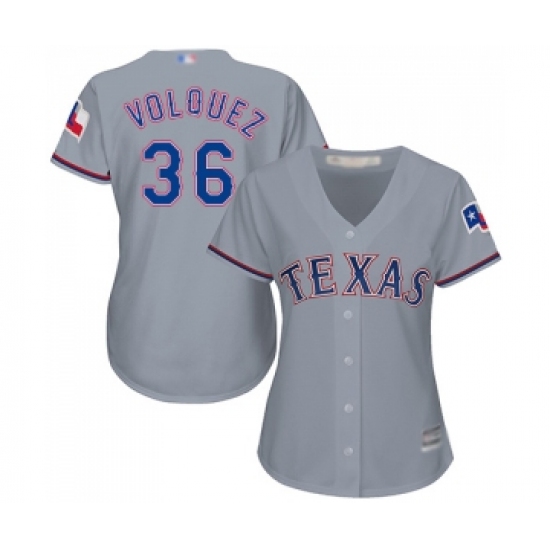 Women's Texas Rangers #36 Edinson Volquez Replica Grey Road Cool Base Baseball Jersey