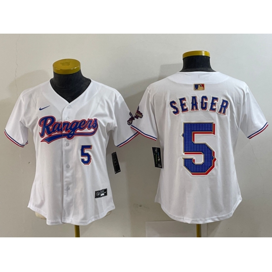 Women's Texas Rangers #5 Corey Seager Number White 2024 Gold Collection Limited Cool Base Jersey