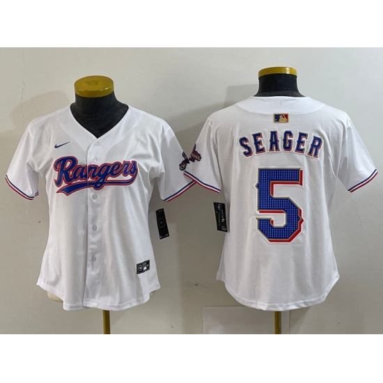 Women's Texas Rangers #5 Corey Seager White 2024 Gold Collection Limited Cool Base Jersey