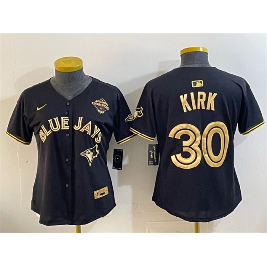 >Women's Toronto Blue Jays #30 Alejandro Kirk Black Gold 2025 American League Champions Limited Stitched Baseball Jersey(Run Small)