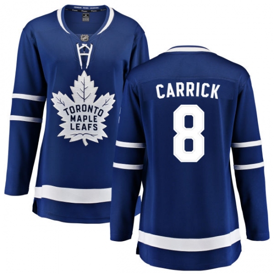Home>NHL>Toronto Maple Leafs>Connor Carrick>Women's Toronto Maple Leafs #8 Connor Carrick Fanatics Branded Royal Blue Home Breakaway NHL Jersey