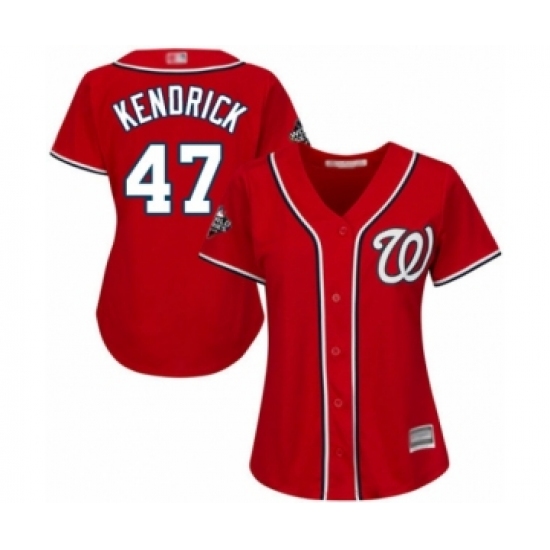 Women's Washington Nationals #47 Howie Kendrick Authentic Red Alternate 1 Cool Base 2019 World Series Bound Baseball Jersey