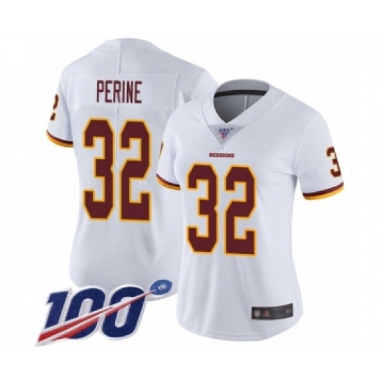 >Women's Washington Redskins #32 Samaje Perine White Vapor Untouchable Limited Player 100th Season Football Jersey
