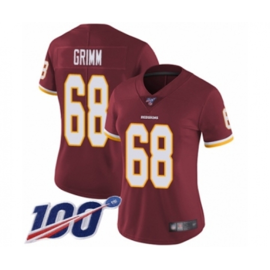 >Women's Washington Redskins #68 Russ Grimm Burgundy Red Team Color Vapor Untouchable Limited Player 100th Season Football Jersey