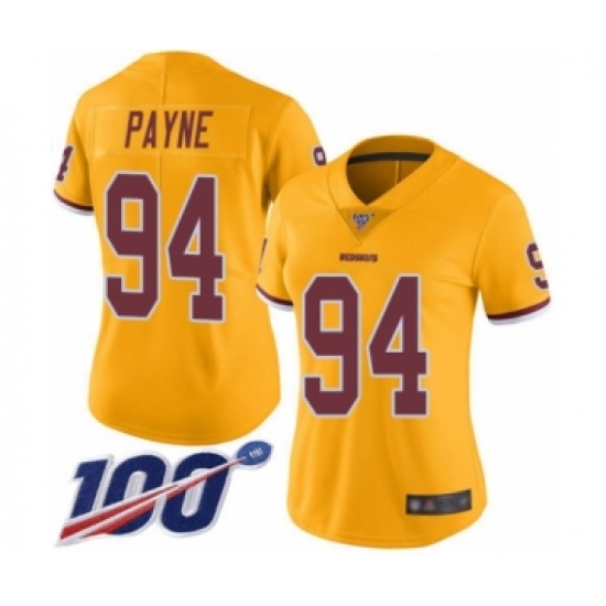 Women's Washington Redskins #94 Da'Ron Payne Limited Gold Rush Vapor Untouchable 100th Season Football Jersey