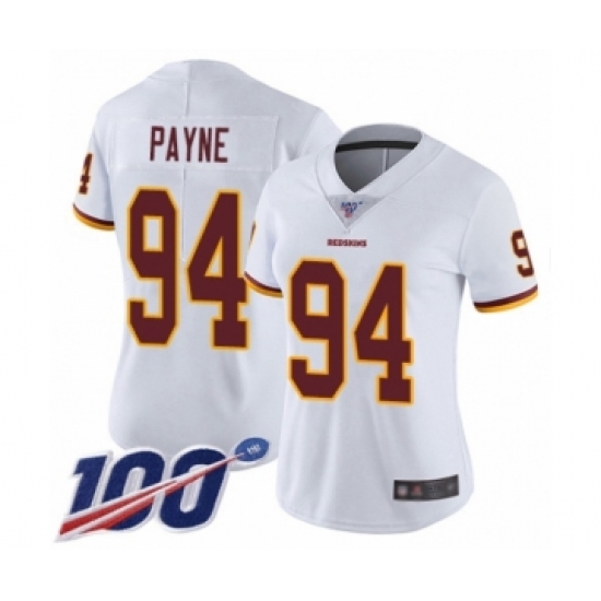 Women's Washington Redskins #94 Da'Ron Payne White Vapor Untouchable Limited Player 100th Season Football Jersey