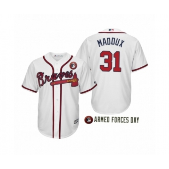 >Youth 2019 Armed Forces Day Greg Maddux #31 Atlanta Braves White Jersey