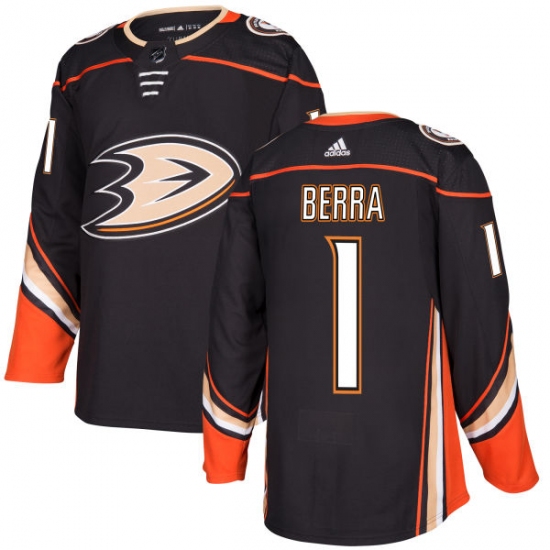 Home>NHL>Anaheim Ducks>Reto Berra>Youth Adidas Anaheim Ducks #1 Reto Berra Premier Black Home NHL Jersey