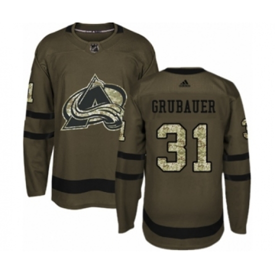 Youth Adidas Colorado Avalanche #31 Philipp Grubauer Premier Green Salute to Service NHL Jersey