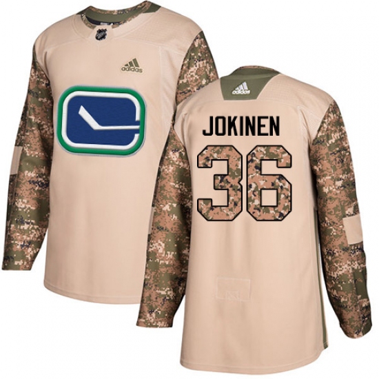 >Youth Adidas Vancouver Canucks #36 Jussi Jokinen Authentic Camo Veterans Day Practice NHL Jersey