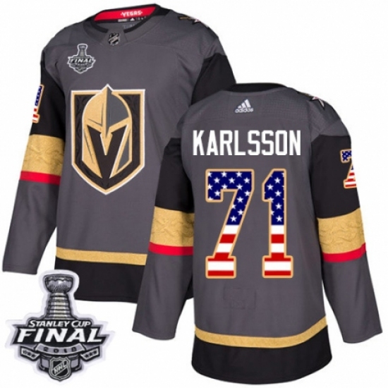 Youth Adidas Vegas Golden Knights #71 William Karlsson Authentic Gray USA Flag Fashion 2018 Stanley Cup Final NHL Jersey
