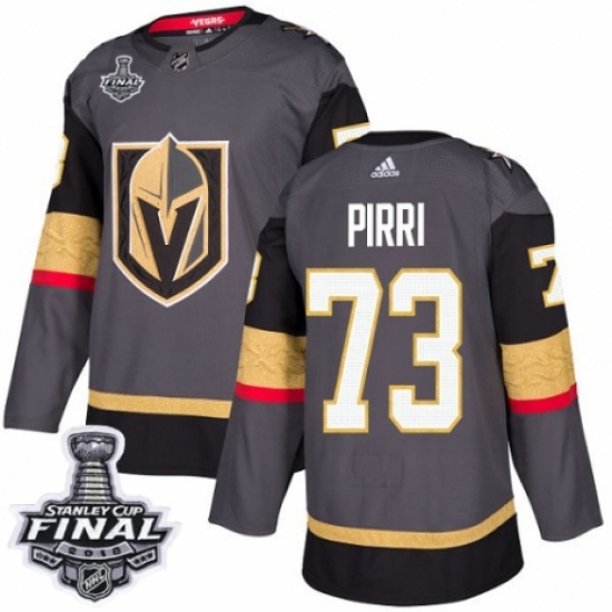 >Youth Adidas Vegas Golden Knights #73 Brandon Pirri Authentic Gray Home 2018 Stanley Cup Final NHL Jersey