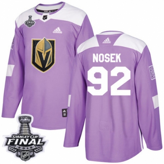 >Youth Adidas Vegas Golden Knights #92 Tomas Nosek Authentic Purple Fights Cancer Practice 2018 Stanley Cup Final NHL Jersey