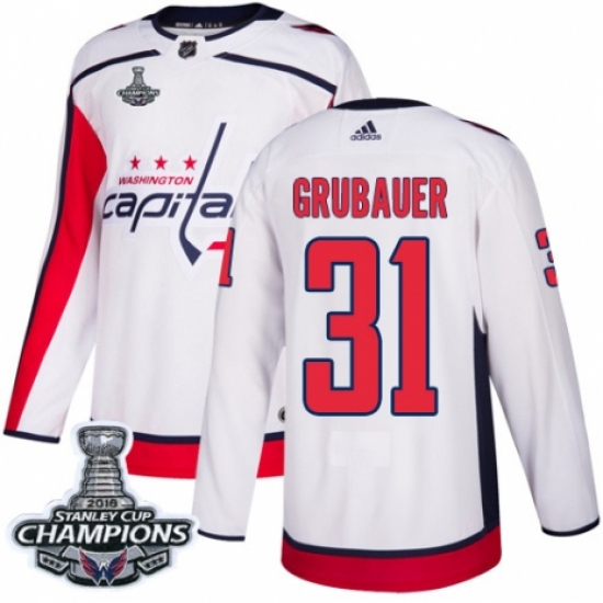 Men's Adidas Washington Capitals #31 Philipp Grubauer Authentic White Away 2018 Stanley Cup Final Champions NHL Jersey