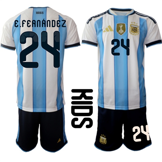 >Youth Argentina #24 E.FEANANDEZ National Team FIFA x World Cup 2026 Home White On Field Kids Jersey