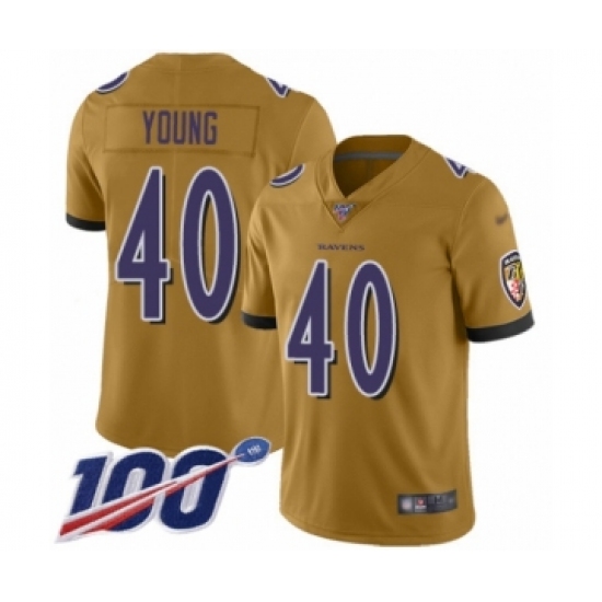 >Youth Baltimore Ravens #40 Kenny Young Limited Gold Inverted Legend 100th Season Football Jersey