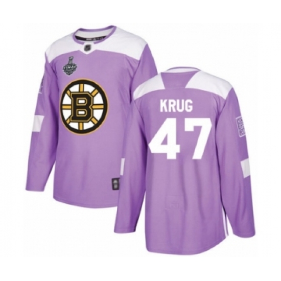 >Youth Boston Bruins #47 Torey Krug Authentic Purple Fights Cancer Practice 2019 Stanley Cup Final Bound Hockey Jersey