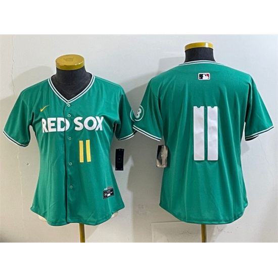 >Youth Boston Red Sox #11 Rafael Devers Green 2025 City Connect Limited Stitched Baseball Jersey