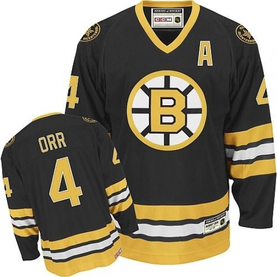 Youth CCM Boston Bruins #4 Bobby Orr Authentic Black Throwback NHL Jersey