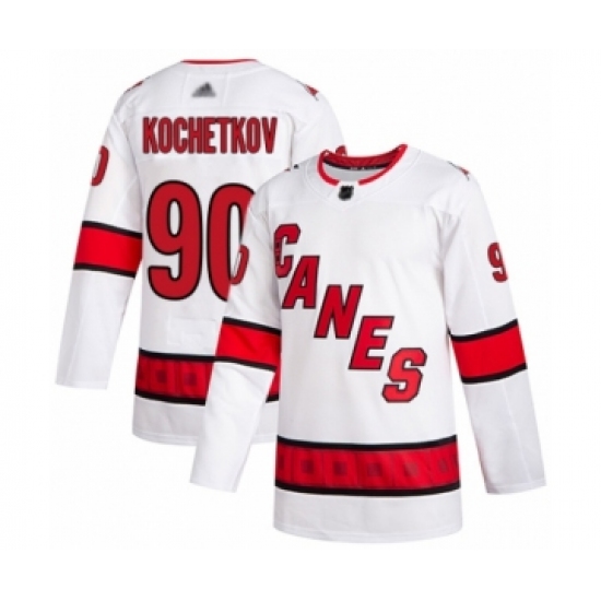 >Youth Carolina Hurricanes #90 Pyotr Kochetkov Authentic White Away Hockey Jersey