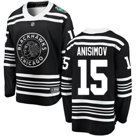 >Youth Chicago Blackhawks #15 Artem Anisimov Black 2019 Winter Classic Fanatics Branded Breakaway NHL Jersey