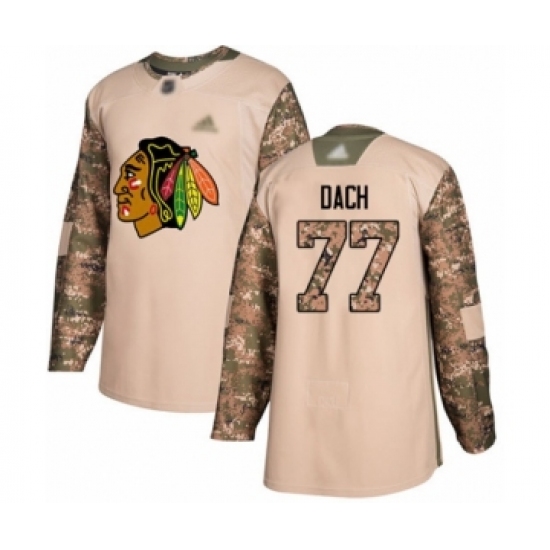 >Youth Chicago Blackhawks #77 Kirby Dach Authentic Camo Veterans Day Practice Hockey Jersey