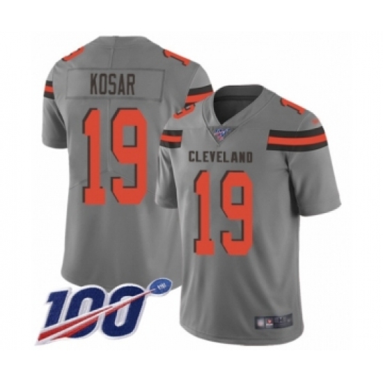 >Youth Cleveland Browns #19 Bernie Kosar Limited Gray Inverted Legend 100th Season Football Jersey