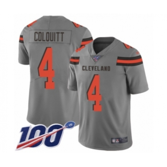 Men's Cleveland Browns #4 Britton Colquitt Limited Gray Inverted Legend 100th Season Football Jersey