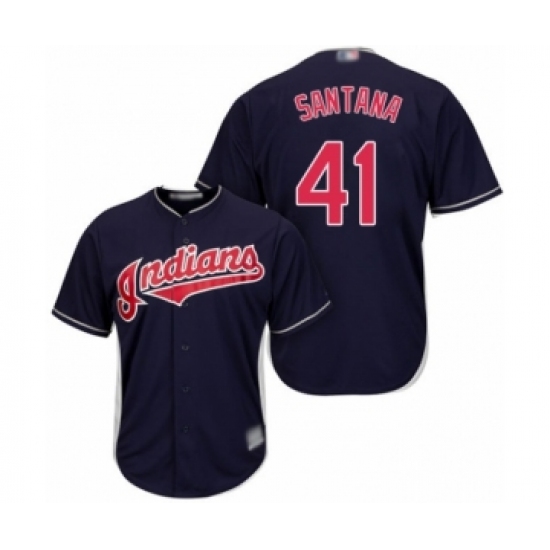 Men's Cleveland Indians #41 Carlos Santana Navy Blue Alternate Flex Base Authentic Collection Baseball Jersey