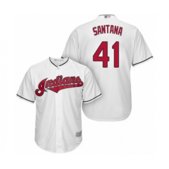 Men's Cleveland Indians #41 Carlos Santana White Home Flex Base Authentic Collection Baseball Jersey