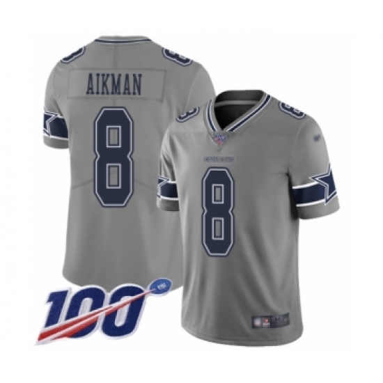 >Youth Dallas Cowboys #8 Troy Aikman Limited Gray Inverted Legend 100th Season Football Jersey