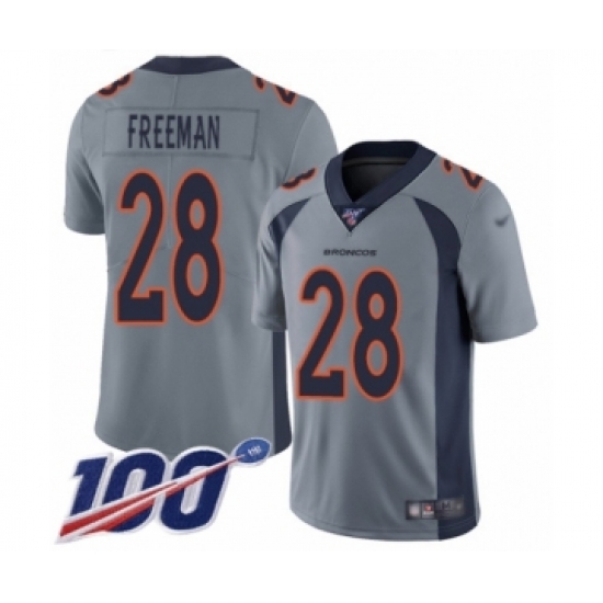 >Youth Denver Broncos #28 Royce Freeman Limited Silver Inverted Legend 100th Season Football Jersey