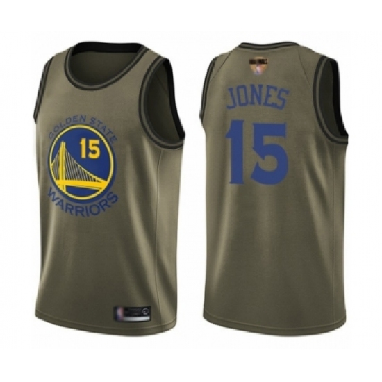 >Youth Golden State Warriors #15 Damian Jones Swingman Green Salute to Service 2019 Basketball Finals Bound Basketball Jersey