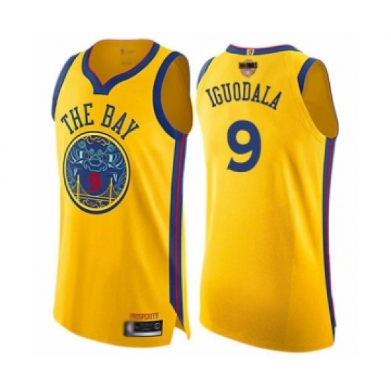 >Youth Golden State Warriors #9 Andre Iguodala Swingman Gold 2019 Basketball Finals Bound Basketball Jersey - City Edition