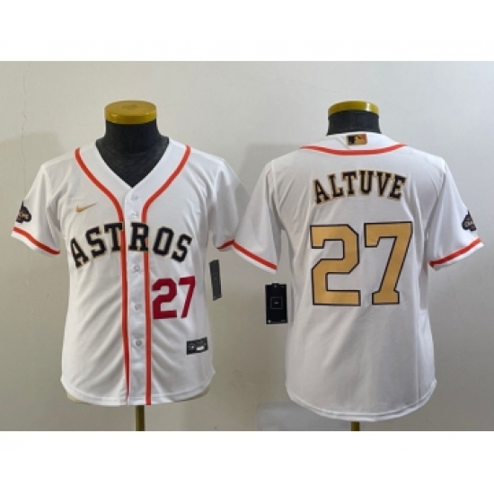 Youth Houston Astros #27 Jose Altuve Number 2023 White Gold World Serise Champions Cool Base Stitched Jersey