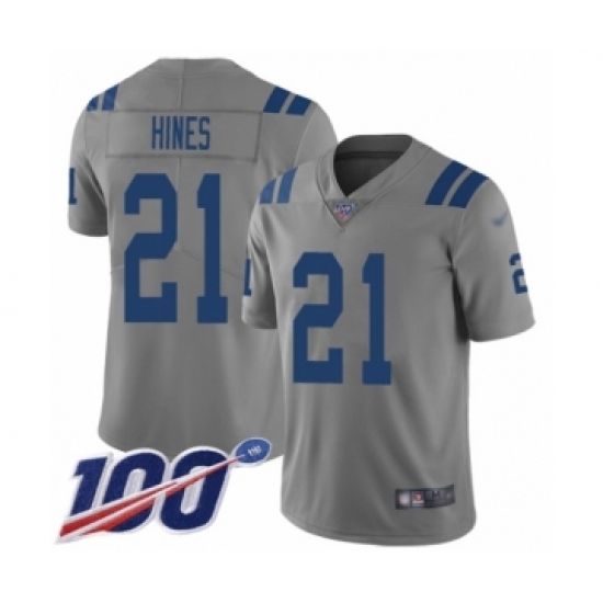 >Youth Indianapolis Colts #21 Nyheim Hines Limited Gray Inverted Legend 100th Season Football Jersey