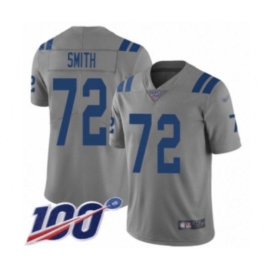 >Youth Indianapolis Colts #72 Braden Smith Limited Gray Inverted Legend 100th Season Football Jersey