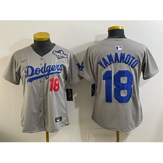 Women's Los Angeles Dodgers #18 山本由伸 Grey 2025 World Series Limited Stitched Baseball Jersey(Run Small)