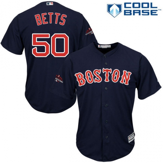Youth Majestic Boston Red Sox #50 Mookie Betts Authentic Navy Blue Alternate Road Cool Base 2018 World Series Champions MLB Jersey