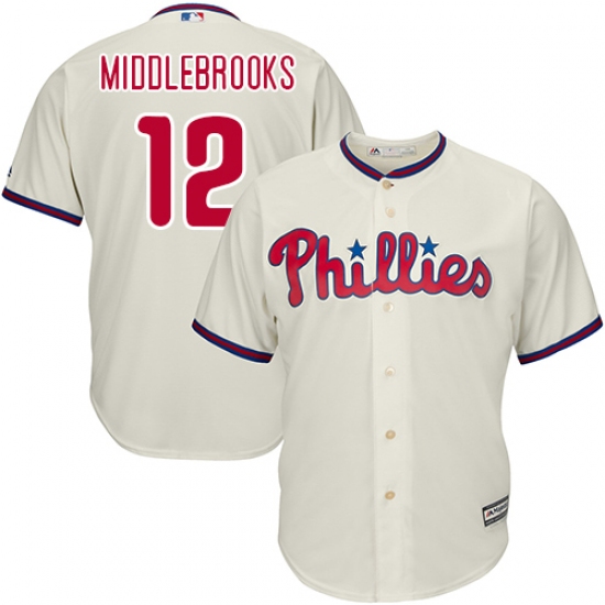 Home>MLB>Philadelphia Phillies>Will Middlebrooks>Youth Majestic Philadelphia Phillies #12 Will Middlebrooks Replica Cream Alternate Cool Base MLB Jersey