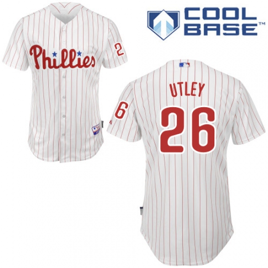 Home>MLB>Philadelphia Phillies>Chase Utley>Youth Majestic Philadelphia Phillies #26 Chase Utley Authentic White/Red Strip Home Cool Base MLB Jersey