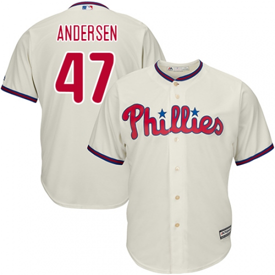 Home>MLB>Philadelphia Phillies>Larry Andersen>Youth Majestic Philadelphia Phillies #47 Larry Andersen Replica Cream Alternate Cool Base MLB Jersey