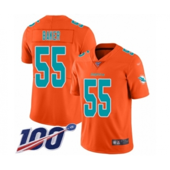 Youth Miami Dolphins #55 Jerome Baker Limited Orange Inverted Legend 100th Season Football Jersey