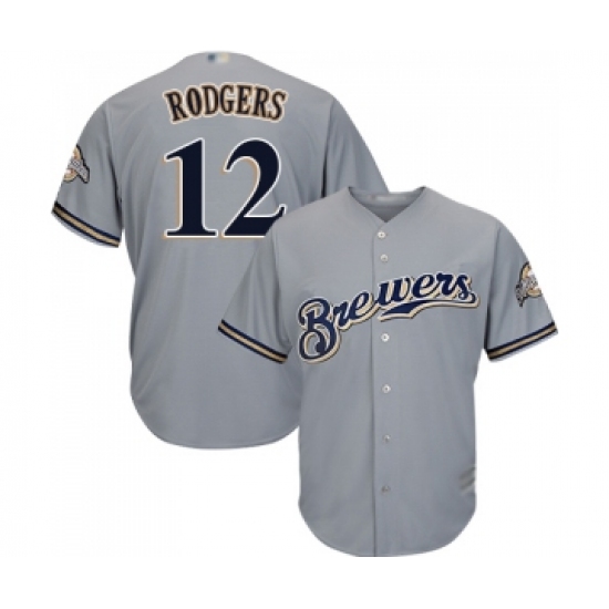 >Youth Milwaukee Brewers #12 Aaron Rodgers Replica Grey Road Cool Base Baseball Jersey