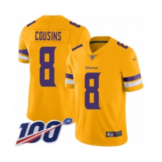 >Youth Minnesota Vikings #8 Kirk Cousins Limited Gold Inverted Legend 100th Season Football Jersey