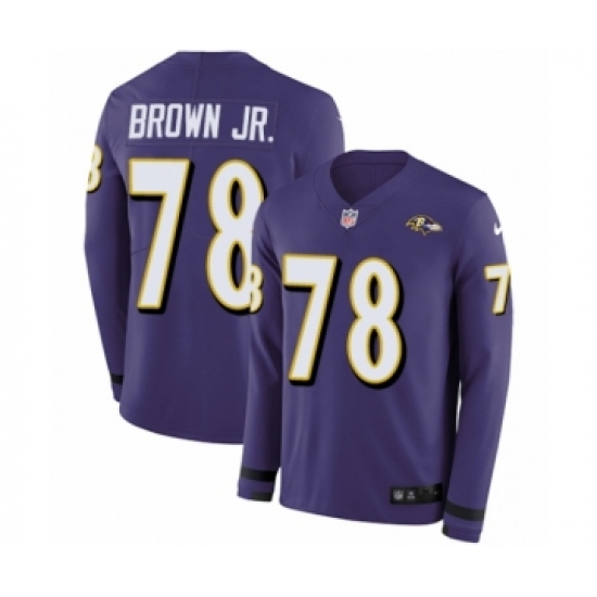 Youth Nike Baltimore Ravens #78 Orlando Brown Jr. Limited Purple Therma Long Sleeve NFL Jersey