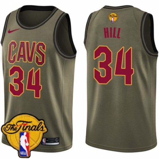 Men's Nike Cleveland Cavaliers #34 Tyrone Hill Swingman Green Salute to Service 2018 NBA Finals Bound NBA Jersey